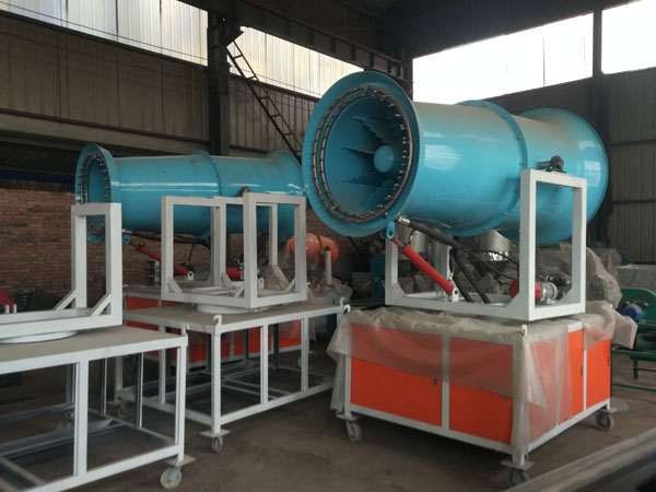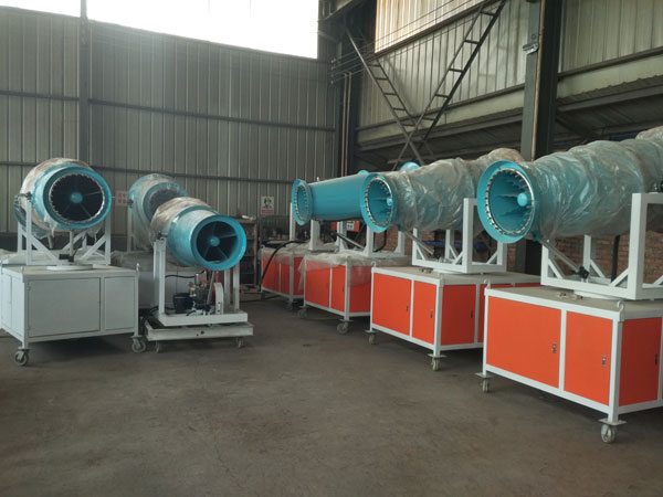 除尘雾炮机-喷雾机主要关键部件包括: 1、除尘喷雾机(雾炮机)的风机是设备的关键,风机采用优质钢板经激光切割机下料,滚筒机卷管翻边、焊接成型,安装轴流风机专用电机和铝风扇叶片。 2、雾化喷嘴的材质选择不锈钢,通过水高速撞击金属的能量,使喷嘴前端的独特设备高频震荡,把雾化的液体二次雾化,从而产生更小的